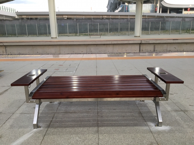 目前,青島西站使用中的站臺臺面共有4個,在每個臺面分別安裝4套座椅,我們鑫金邦的同事用時2天將所有站臺不銹鋼椅子安裝完成。這款座椅支架由防銹不銹鋼支架制作而成,其他部位皆是木質材質,外觀大氣、上檔次,左右手的帶不銹鋼煙灰缸的扶手更加體現了其人性化的設計。