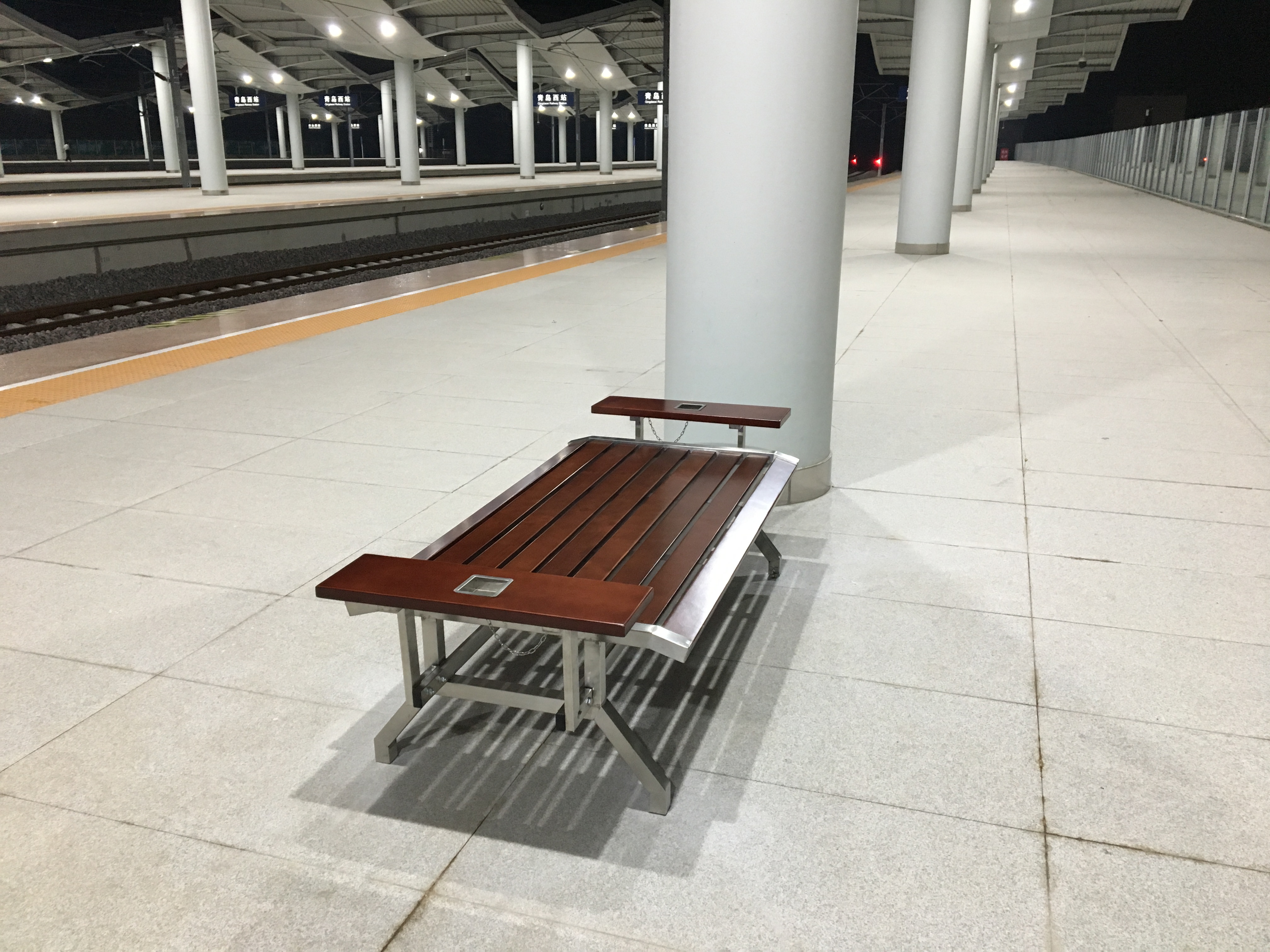 近日青島西站在我們青島鑫金邦一次采購了16套不銹鋼座椅,將它們安裝在站臺后就可供旅客在等車時休息用。